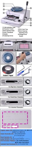 Features:2 in 1 Manual PVC Card Embossing & Indenting MachineInternal 80 Code Characters, Adopting ISO International Credit Card Special Characters, Meets All Your NeedsHeavy Duty Steel ConstructionEasy to Use with No Skilled Training Required, Just Turn the dial to the Character you Want and Pull the LeverIndicator and Sample Card For Raised Type Location IndicationAdjustable Kerning, 7, 10 or 12 Characters Per InchTotal 11 Lines of Embossing2 Correcting Characters For Error Correction, to Press Small Characters or Large Characters FlatCharacter Depth can be Adjusted Through Regulating Port Located in The Bottom of the Machine (Hardware is included.)Specification:Operation Mode: ManualApplied workpiece: Normative PVC card, That be 3-3/8" x 2-1/8" ( 85.5mm x 55mm )Internal 80 Code Characters (Refer to the Picture):26 Capitalization Case of English Letters20 Capitalization & Lower Arabic Numerals8 Small Symbols14 Large Symbols10 Indented Italic Numbers2 Correcting Characters (1 for Small Characters, 1 for Large Characters)3 Intervals: 1/7"(For Large Characters), 1/10"(For Small Characters),and 1/12" (For Indented Characters)Raised Type Lines: 1-11 LinesOverall Dimension (L x W x H): 13 1/4" x 10 1/2" x 11"Package Included:1 x PVC Card Embossing & Indenting Machine1 x Punch Handle1 x Handle Fastening Screw1 x Blank Card for Testing1 x User's ManualSome Hardwares